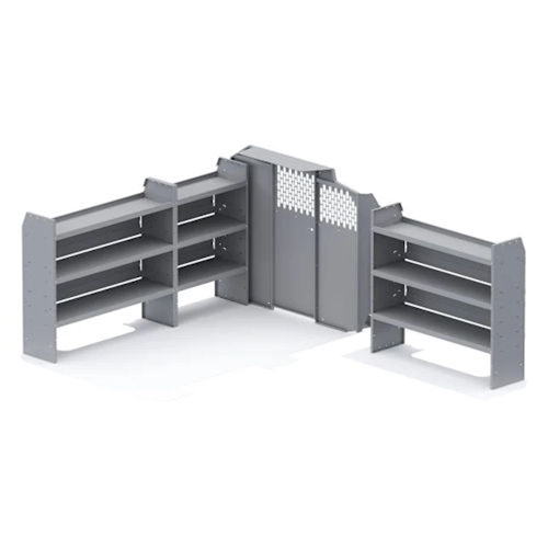 The ideal starter van equipment package, with a bulk-head partition and three shelving units to get you quickly on the road.